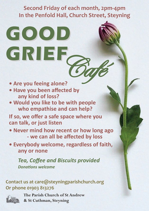 Those who have experienced any sort of loss are welcome to join us for tea or coffee, biscuits and a listening ear.